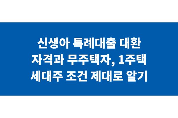 신생아 특례대출 대환 자격과 무주택자, 1주택 세대주 조건 제대로 알기