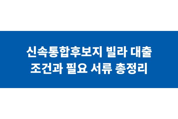 신속통합후보지 빌라 대출 조건과 필요 서류 총정리