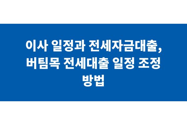이사 일정과 전세자금대출, 버팀목 전세대출 일정 조정 방법