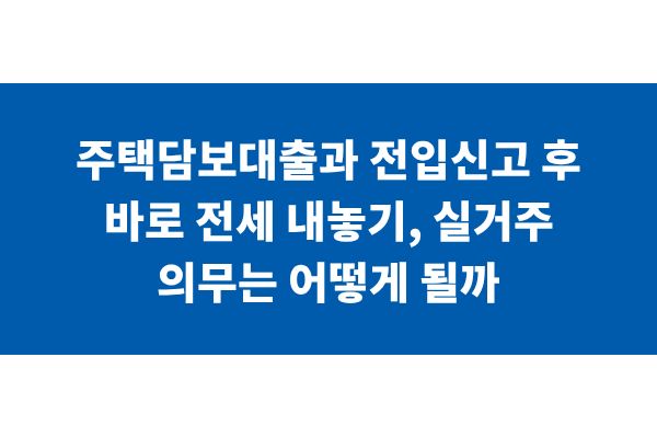 주택담보대출과 전입신고 후 바로 전세 내놓기, 실거주 의무는 어떻게 될까