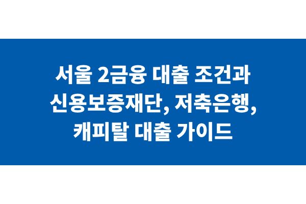 서울 2금융 대출 조건과 신용보증재단, 저축은행, 캐피탈 대출 가이드