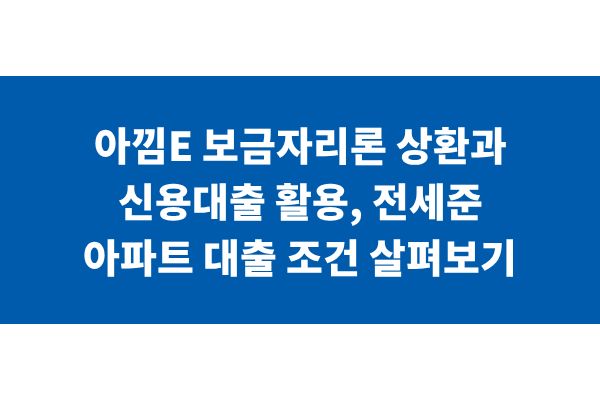 아낌E 보금자리론 상환과 신용대출 활용, 전세준 아파트 대출 조건 살펴보기