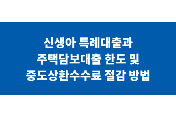 신생아 특례대출과 주택담보대출 한도 및 중도상환수수료 절감 방법