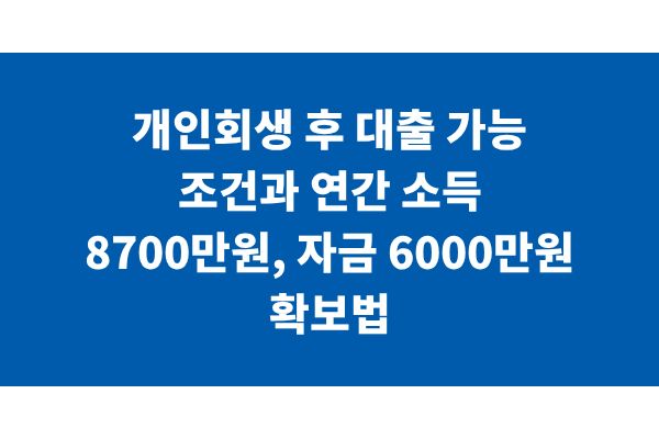 개인회생 후 대출 가능 조건과 연간 소득 8700만원, 자금 6000만원 확보법
