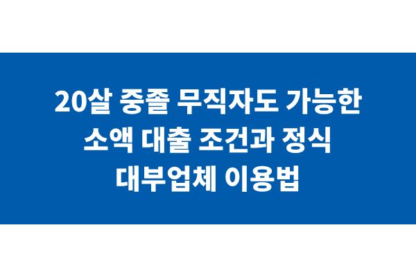 20살 중졸 무직자도 가능한 소액 대출 조건과 정식 대부업체 이용법