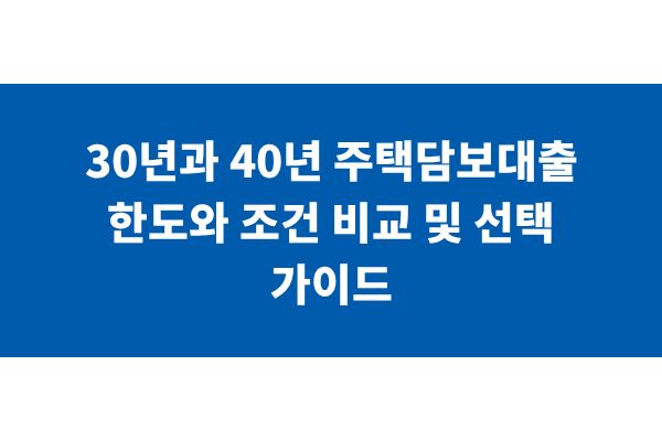 30년과 40년 주택담보대출 한도와 조건 비교 및 선택 가이드