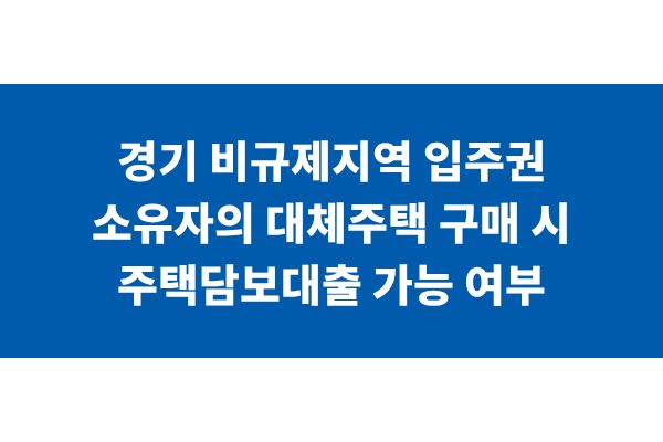 경기 비규제지역 입주권 소유자의 대체주택 구매 시 주택담보대출 가능 여부