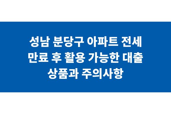 성남 분당구 아파트 전세 만료 후 활용 가능한 대출 상품과 주의사항