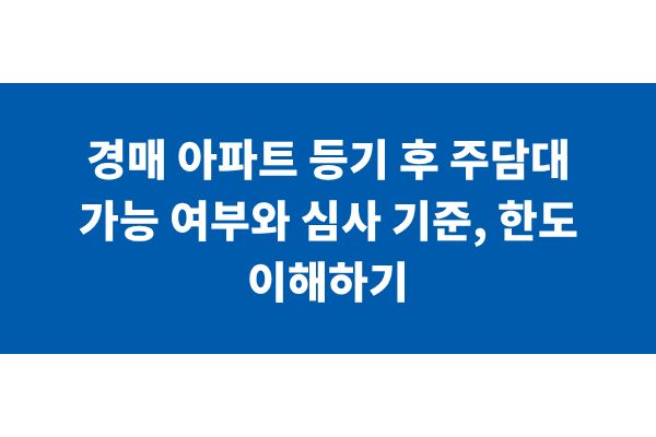 경매 아파트 등기 후 주담대 가능 여부와 심사 기준, 한도 이해하기
