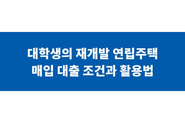 대학생의 재개발 연립주택 매입 대출 조건과 활용법