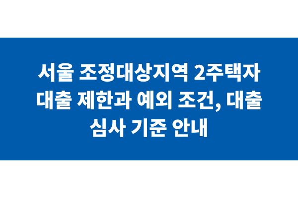 서울 조정대상지역 2주택자 대출 제한과 예외 조건, 대출 심사 기준 안내