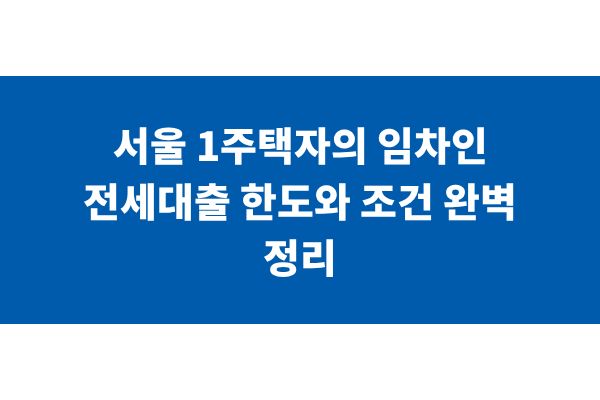 서울 1주택자의 임차인 전세대출 한도와 조건 완벽 정리
