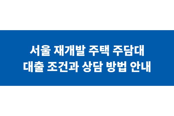 서울 재개발 주택 주담대 대출 조건과 상담 방법 안내
