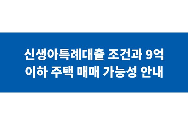신생아특례대출 조건과 9억 이하 주택 매매 가능성 안내