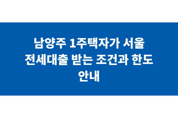 남양주 1주택자가 서울 전세대출 받는 조건과 한도 안내