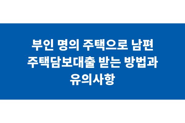 부인 명의 주택으로 남편 주택담보대출 받는 방법과 유의사항