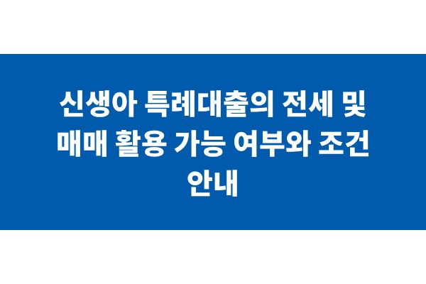 신생아 특례대출의 전세 및 매매 활용 가능 여부와 조건 안내