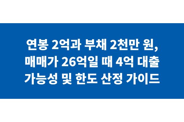 연봉 2억과 부채 2천만 원, 매매가 26억일 때 4억 대출 가능성 및 한도 산정 가이드