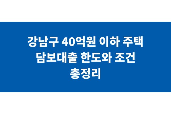 강남구 40억원 이하 주택 담보대출 한도와 조건 총정리