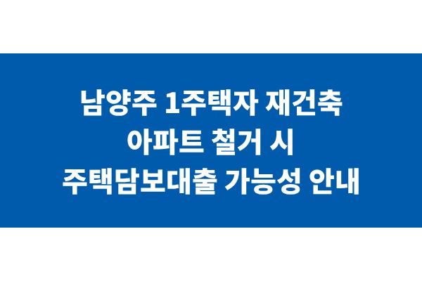 남양주 1주택자 재건축 아파트 철거 시 주택담보대출 가능성 안내