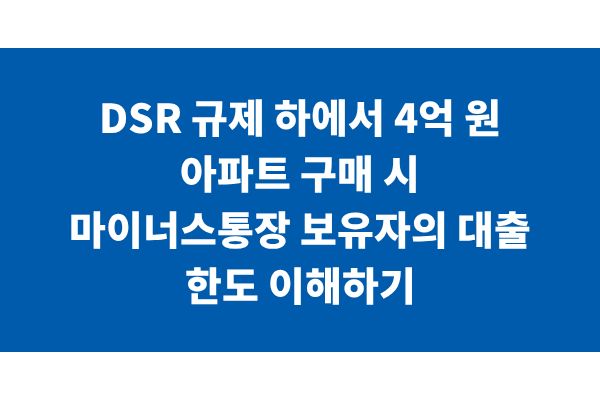 DSR 규제 하에서 4억 원 아파트 구매 시 마이너스통장 보유자의 대출 한도 이해하기