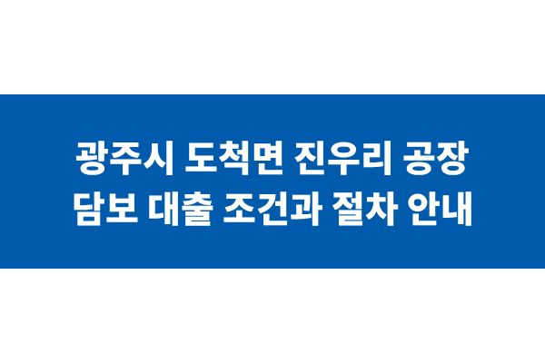 광주시 도척면 진우리 공장 담보 대출 조건과 절차 안내