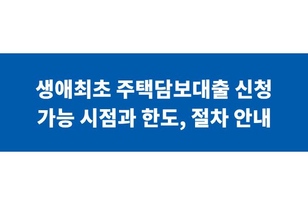 생애최초 주택담보대출 신청 가능 시점과 한도, 절차 안내