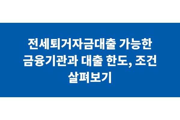 전세퇴거자금대출 가능한 금융기관과 대출 한도, 조건 살펴보기