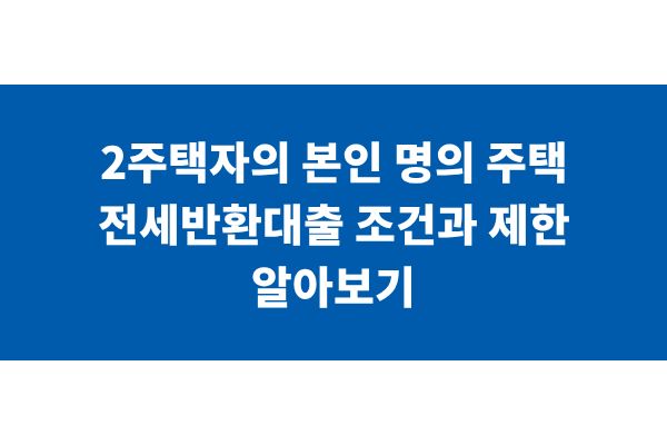 2주택자의 본인 명의 주택 전세반환대출 조건과 제한 알아보기