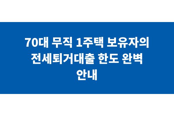 70대 무직 1주택 보유자의 전세퇴거대출 한도 완벽 안내