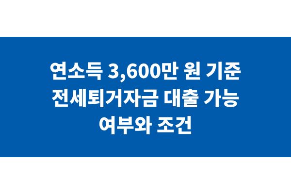 연소득 3,600만 원 기준 전세퇴거자금 대출 가능 여부와 조건
