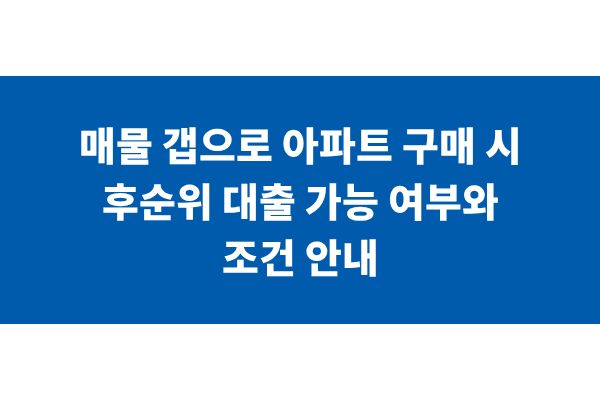 매물 갭으로 아파트 구매 시 후순위 대출 가능 여부와 조건 안내
