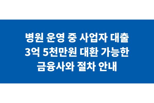병원 운영 중 사업자 대출 3억 5천만원 대환 가능한 금융사와 절차 안내