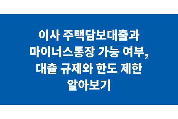 이사 주택담보대출과 마이너스통장 가능 여부, 대출 규제와 한도 제한 알아보기