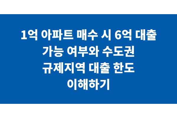 1억 아파트 매수 시 6억 대출 가능 여부와 수도권 규제지역 대출 한도 이해하기