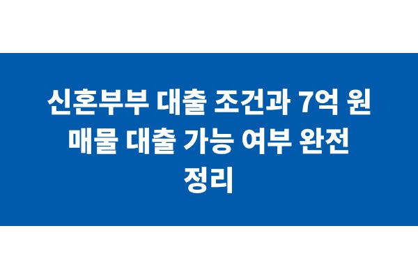 신혼부부 대출 조건과 7억 원 매물 대출 가능 여부 완전 정리
