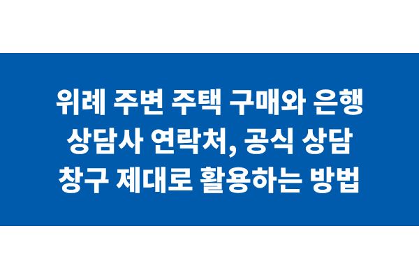 위례 주변 주택 구매와 은행 상담사 연락처, 공식 상담 창구 제대로 활용하는 방법