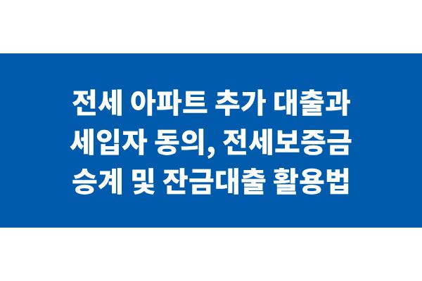 전세 아파트 추가 대출과 세입자 동의, 전세보증금 승계 및 잔금대출 활용법