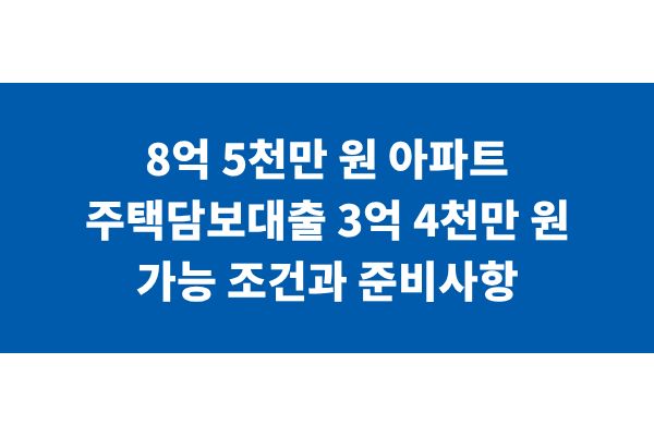 8억 5천만 원 아파트 주택담보대출 3억 4천만 원 가능 조건과 준비사항