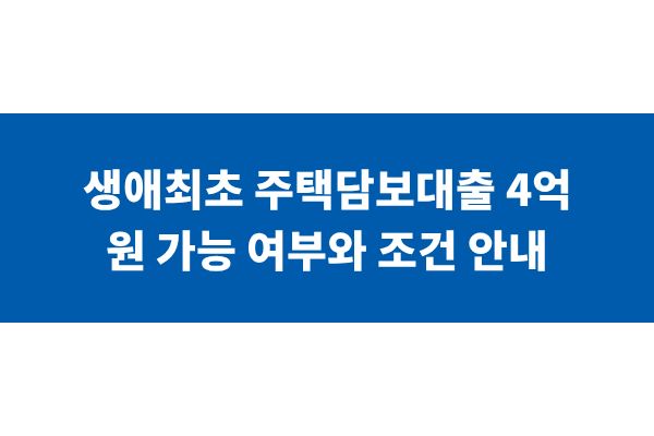 생애최초 주택담보대출 4억 원 가능 여부와 조건 안내