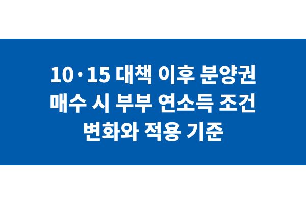 10·15 대책 이후 분양권 매수 시 부부 연소득 조건 변화와 적용 기준