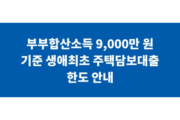 부부합산소득 9,000만 원 기준 생애최초 주택담보대출 한도 안내