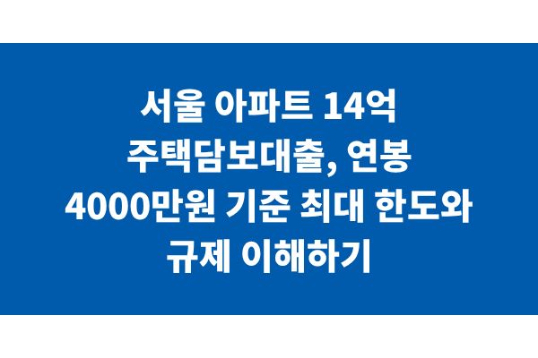 서울 아파트 14억 주택담보대출, 연봉 4000만원 기준 최대 한도와 규제 이해하기