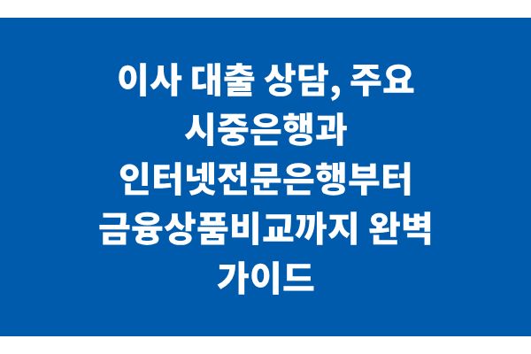 이사 대출 상담, 주요 시중은행과 인터넷전문은행부터 금융상품비교까지 완벽 가이드