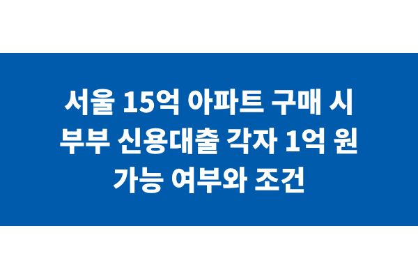 서울 15억 아파트 구매 시 부부 신용대출 각자 1억 원 가능 여부와 조건