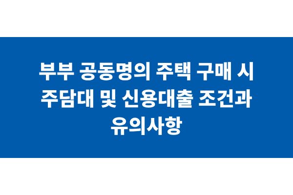 부부 공동명의 주택 구매 시 주담대 및 신용대출 조건과 유의사항