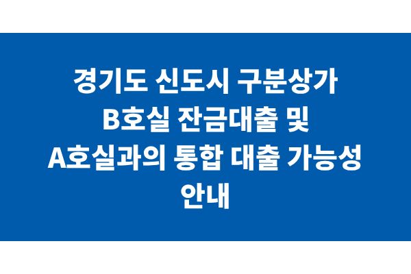 경기도 신도시 구분상가 B호실 잔금대출 및 A호실과의 통합 대출 가능성 안내