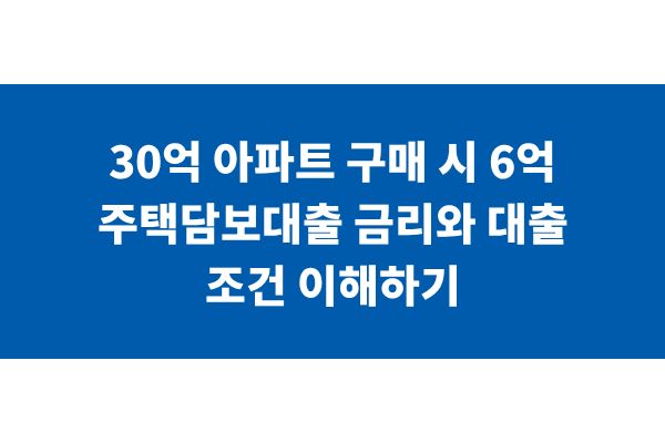 30억 아파트 구매 시 6억 주택담보대출 금리와 대출 조건 이해하기