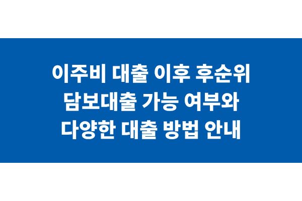 이주비 대출 이후 후순위 담보대출 가능 여부와 다양한 대출 방법 안내