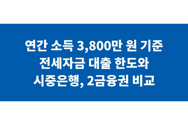 연간 소득 3,800만 원 기준 전세자금 대출 한도와 시중은행, 2금융권 비교